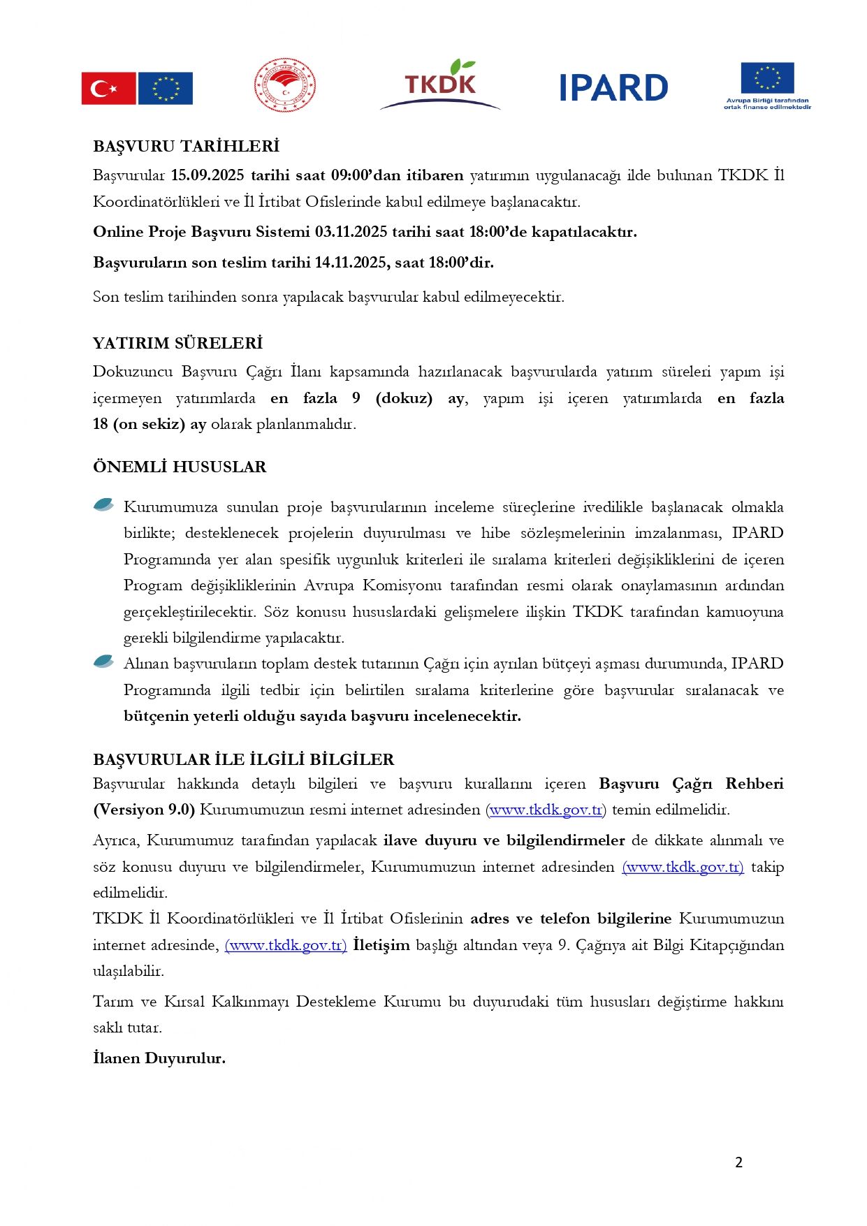 Tarım ve Orman Bakanlığı’na bağlı TKDK, IPARD III Dönemi 9. Başvuru Çağrısını yayımladı.